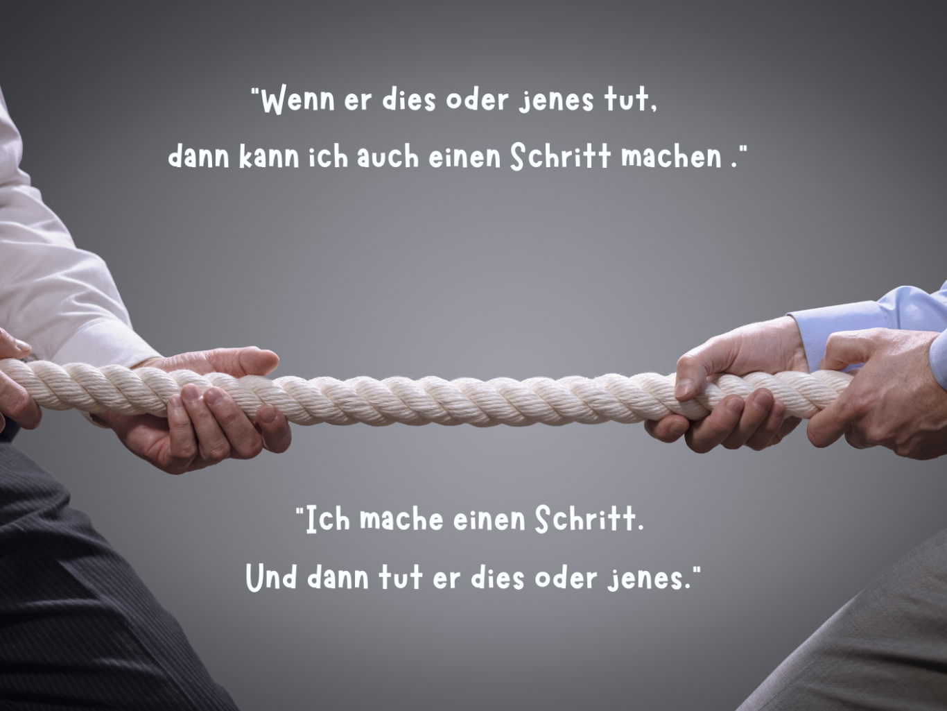 - ständig neue Gründe werden vorgeschoben, warum etwas nicht umgesetzt oder mit jemandem nicht zusammengearbeitet werden kann